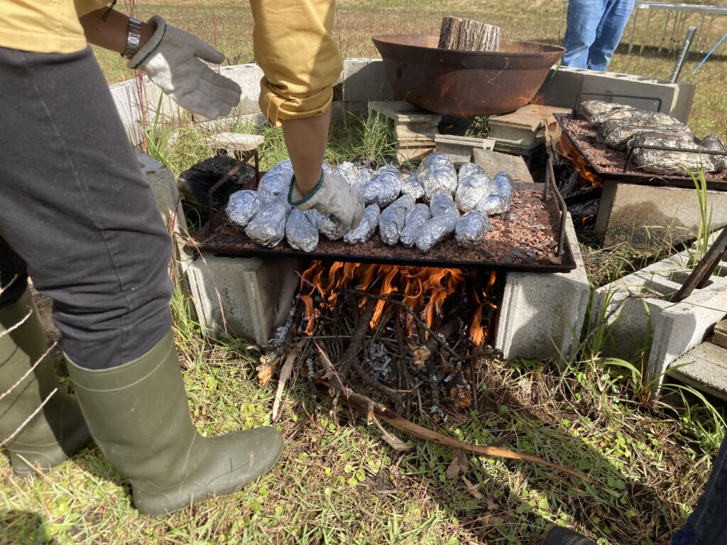 40人分はあろうかという焼き芋。場所を提供いただいた合同会社YYCさんにご準備いただきました。